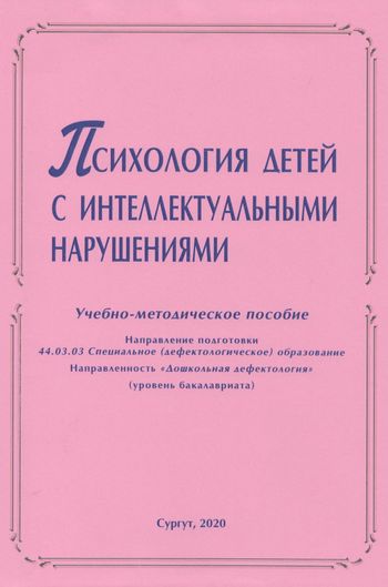Болгарова М.А. Психология детей с интеллектуальными нарушениями : учебно-методическое пособие: направление подготовки 44.03.03. Специальное (дефектологическое) образование, направленность «Дошкольная дефектология» (уровень бакалавриата) / Болгарова М.А., Коротовских Т.В.. — Сургут : Сургутский государственный педагогический университет, 2020. — 114 c. — Текст : электронный // Цифровой образовательный ресурс IPR SMART : [сайт]. — URL: https://www.iprbookshop.ru/120632.html (дата обращения: 06.12.2025). — Режим доступа: для авторизир. пользователей