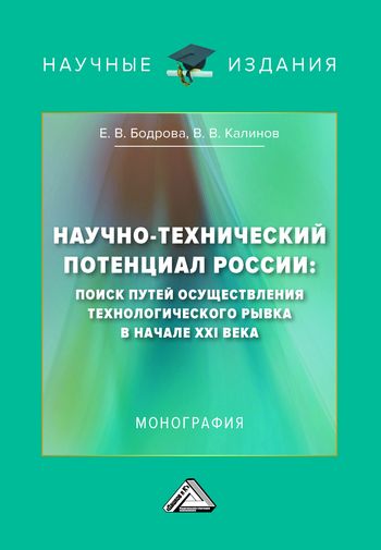 Бодрова, Е. В. Научно-технический потенциал России: поиск путей осуществления технологического рывка в начале XXI века : монография / Е. В. Бодрова, В. В. Калинов. — 2-е изд. — Москва : Дашков и К, 2022. — 407 c. — ISBN 978-5-394-04842-5. — Текст : электронный // Цифровой образовательный ресурс IPR SMART : [сайт]. — URL: https://www.iprbookshop.ru/120732.html (дата обращения: 21.06.2023). — Режим доступа: для авторизир. пользователей