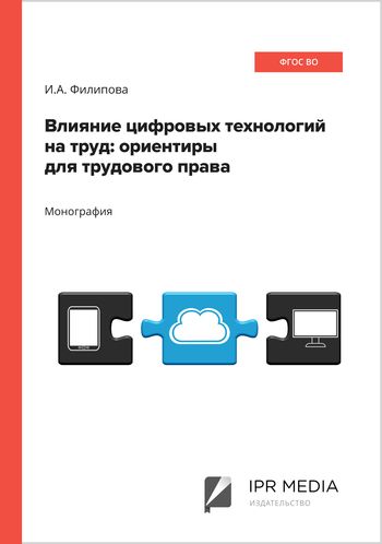 Филипова, И. А. Влияние цифровых технологий на труд: ориентиры для трудового права : монография / И. А. Филипова. — Москва : Ай Пи Ар Медиа, 2021. — 106 c. — ISBN 978-5-4497-1661-3. — Текст : электронный // Цифровой образовательный ресурс IPR SMART : [сайт]. — URL: https://www.iprbookshop.ru/121113.html (дата обращения: 15.06.2022). — Режим доступа: для авторизир. пользователей