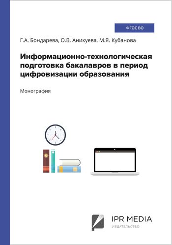 Бондарева, Г. А. Информационно-технологическая подготовка бакалавров в период цифровизации образования : монография / Г. А. Бондарева, О. В. Аникуева, М. Я. Кубанова. — Москва : Ай Пи Ар Медиа, 2022. — 142 c. — ISBN 978-5-4497-1626-2. — Текст : электронный // Цифровой образовательный ресурс IPR SMART : [сайт]. — URL: https://www.iprbookshop.ru/121116.html (дата обращения: 26.04.2022). — Режим доступа: для авторизир. пользователей