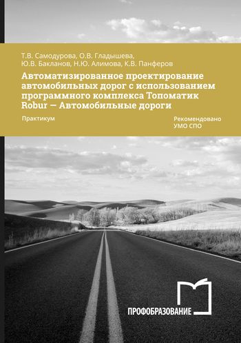 Автоматизированное проектирование автомобильных дорог с использованием программного комплекса Топоматик Robur — Автомобильные дороги : практикум для СПО / Т. В. Самодурова, О. В. Гладышева, Ю. В. Бакланов [и др.]. — Саратов : Профобразование, 2022. — 89 c. — ISBN 978-5-4488-1485-3. — Текст : электронный // Цифровой образовательный ресурс IPR SMART : [сайт]. — URL: https://www.iprbookshop.ru/121292.html (дата обращения: 15.06.2022). — Режим доступа: для авторизир. пользователей