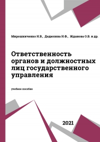 Ответственность органов и должностных лиц государственного управления : учебное пособие / Н.В. Мирошниченко [и др.].. — Ставрополь : Ставропольский государственный аграрный университет, 2021. — 128 c. — Текст : электронный // Цифровой образовательный ресурс IPR SMART : [сайт]. — URL: https://www.iprbookshop.ru/121689.html (дата обращения: 05.12.2025). — Режим доступа: для авторизир. пользователей
