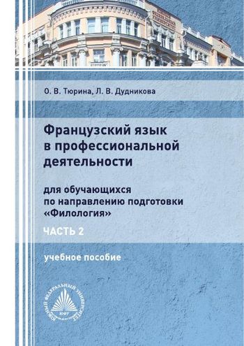 Тюрина, О. В. Французский язык в профессиональной деятельности (для обучающихся по направлению подготовки «Филология»). В 2 частях. Ч.2 : учебное пособие / О. В. Тюрина, Л. В. Дудникова. — Ростов-на-Дону, Таганрог : Издательство Южного федерального университета, 2021. — 131 c. — ISBN 978-5-9275-3795-2, 978-5-9275-3901-7 (ч.2). — Текст : электронный // Цифровой образовательный ресурс IPR SMART : [сайт]. — URL: https://www.iprbookshop.ru/121887.html (дата обращения: 23.05.2022). — Режим доступа: для авторизир. пользователей