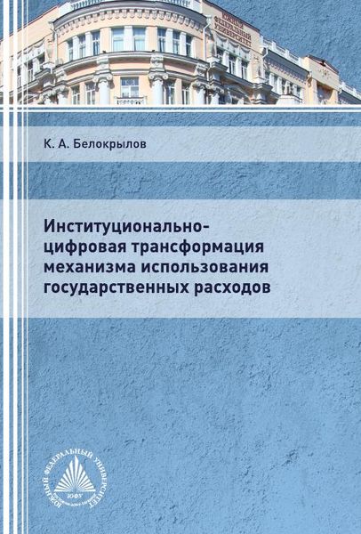 Белокрылов, К. А. Институционально-цифровая трансформация механизма использования государственных расходов : монография / К. А. Белокрылов. — Ростов-на-Дону, Таганрог : Издательство Южного федерального университета, 2021. — 202 c. — ISBN 978-5-9275-3786-0. — Текст : электронный // Цифровой образовательный ресурс IPR SMART : [сайт]. — URL: https://www.iprbookshop.ru/121908.html (дата обращения: 23.05.2022). — Режим доступа: для авторизир. пользователей