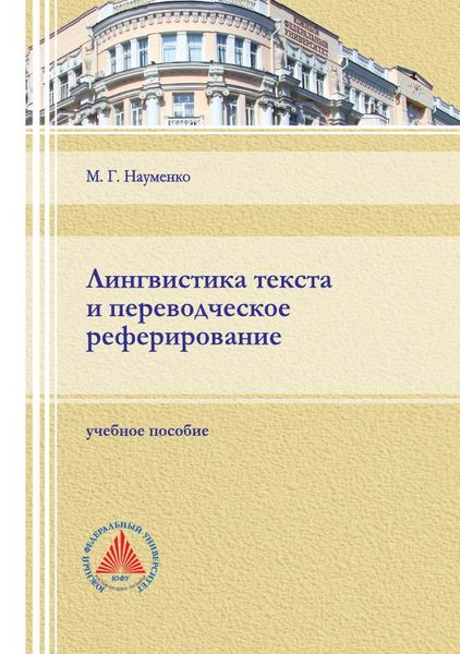 Науменко, М. Г. Лингвистика текста и переводческое реферирование : учебное пособие / М. Г. Науменко. — Ростов-на-Дону, Таганрог : Издательство Южного федерального университета, 2021. — 114 c. — ISBN 978-5-9275-3969-7. — Текст : электронный // Цифровой образовательный ресурс IPR SMART : [сайт]. — URL: https://www.iprbookshop.ru/121912.html (дата обращения: 23.05.2022). — Режим доступа: для авторизир. пользователей