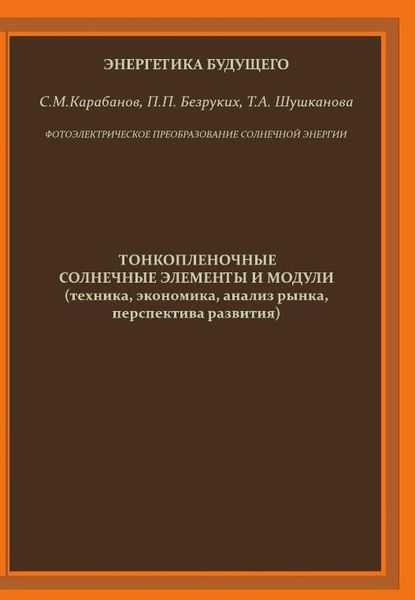 Карабанов, С. М. Энергетика будущего. Фотоэлектрическое преобразование солнечной энергии. Тонкопленочные солнечные элементы и модули (техника, экономика, анализ рынка, перспектива развития) / С. М. Карабанов, П. П. Безруких, Т. А. Шушканова. — Москва : Издательский дом ЭНЕРГИЯ, 2014. — 84 c. — ISBN 978-5-98908-230-8. — Текст : электронный // Цифровой образовательный ресурс IPR SMART : [сайт]. — URL: https://www.iprbookshop.ru/121959.html (дата обращения: 14.04.2023). — Режим доступа: для авторизир. пользователей
