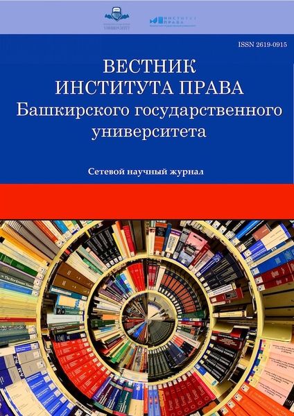 Сетевое издание «Вестник Института права Башкирского государственного университета» учрежден и издается Федеральным государственным бюджетным образовательным учреждением высшего образования «Башкирский государственный университет» с 2018 г. В нем публикуются оригинальные научные статьи ведущих ученых в области юриспруденции Республики Башкортостан – преподавателей Института права Башкирского государственного университета по актуальным проблемам всех отраслей отечественного и международного права, практической деятельности правоохранительных органов и суда. Цель журнала – формирование единого научного пространства, обмен результатами научных достижений в области юриспруденции и правоприменительной практики.