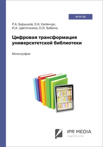 Цифровая трансформация университетской библиотеки : монография / Р. А. Барышев, Е. Н. Касянчук, И. А. Цветочкина, О. И. Бабина. — Москва : Ай Пи Ар Медиа, 2022. — 119 c. — ISBN 978-5-4497-1735-1. — Текст : электронный // Цифровой образовательный ресурс IPR SMART : [сайт]. — URL: https://www.iprbookshop.ru/122165.html (дата обращения: 15.06.2022). — Режим доступа: для авторизир. пользователей
