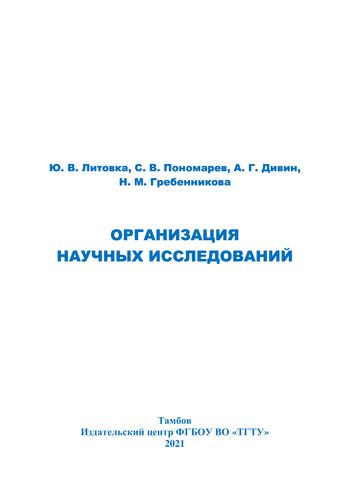 Организация научных исследований : учебное пособие / Ю. В. Литовка, С. В. Пономарев, А. Г. Дивин, Н. М. Гребенникова. — Тамбов : Тамбовский государственный технический университет, ЭБС АСВ, 2021. — 96 c. — ISBN 978-5-8265-2337-7. — Текст : электронный // Цифровой образовательный ресурс IPR SMART : [сайт]. — URL: https://www.iprbookshop.ru/122971.html (дата обращения: 18.07.2022). — Режим доступа: для авторизир. пользователей