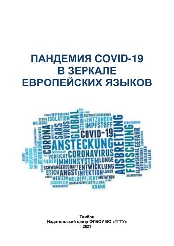 Пандемия COVID-19 в зеркале европейских языков [Электронный ресурс]: монография/ Н.Ю. Бородулина [и др.].— Электрон. текстовые данные.— Тамбов: Тамбовский государственный технический университет, ЭБС АСВ, 2021.— 240 c.— Режим доступа: https://www.iprbookshop.ru/122977.— IPR SMART, по паролю