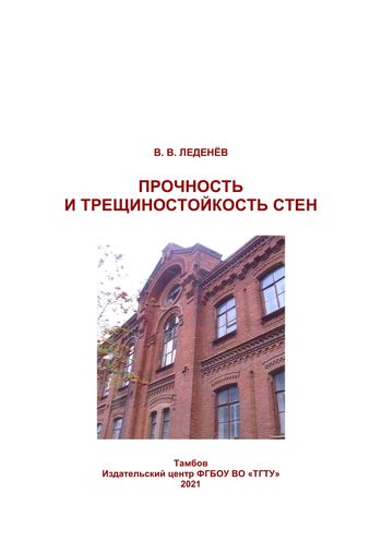 Леденёв, В. В. Прочность и трещиностойкость стен : монография / В. В. Леденёв. — Тамбов : Тамбовский государственный технический университет, ЭБС АСВ, 2021. — 224 c. — ISBN 978-5-8265-2311-7. — Текст : электронный // Цифровой образовательный ресурс IPR SMART : [сайт]. — URL: https://www.iprbookshop.ru/123052.html (дата обращения: 20.07.2022). — Режим доступа: для авторизир. пользователей