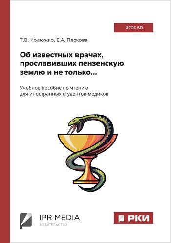 Колюжко, Т. В. Об известных врачах, прославивших пензенскую землю и не только… : учебное пособие по чтению для иностранных студентов-медиков / Т. В. Колюжко, Е. А. Пескова. — Москва : Ай Пи Ар Медиа, 2022. — 72 c. — ISBN 978-5-4497-1766-5. — Текст : электронный // Цифровой образовательный ресурс IPR SMART : [сайт]. — URL: https://www.iprbookshop.ru/123205.html (дата обращения: 09.08.2022). — Режим доступа: для авторизир. пользователей