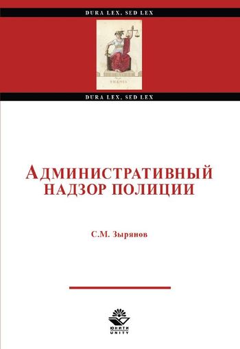Зырянов, С. М. Административный надзор полиции : учебное пособие для студентов вузов, обучающихся по направлению подготовки «Юриспруденция» / С. М. Зырянов. — Москва : ЮНИТИ-ДАНА, 2019. — 128 c. — ISBN 978-5-238-03264-1. — Текст : электронный // Цифровой образовательный ресурс IPR SMART : [сайт]. — URL: https://www.iprbookshop.ru/123377.html (дата обращения: 22.08.2022). — Режим доступа: для авторизир. пользователей