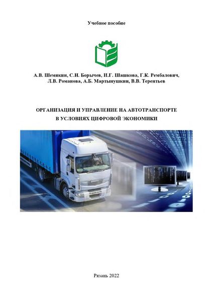 Организация и управление на автотранспорте в условиях цифровой экономики : учебное пособие / А.В. Шемякин [и др.].. — Рязань : Рязанский государственный агротехнологический университет имени П.А. Костычева, 2022. — 162 c. — ISBN 978-5-98660-395-7. — Текст : электронный // Цифровой образовательный ресурс IPR SMART : [сайт]. — URL: https://www.iprbookshop.ru/123658.html (дата обращения: 21.12.2025). — Режим доступа: для авторизир. пользователей