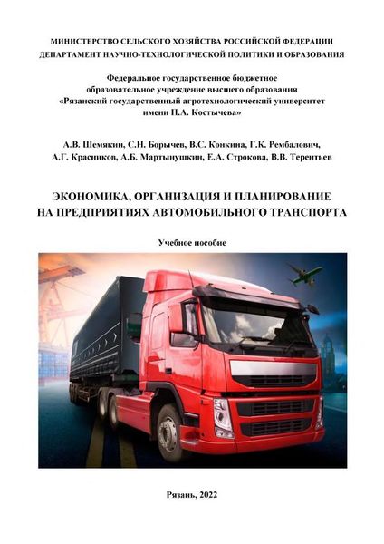 Экономика, организация и планирование на предприятиях автомобильного транспорта : учебное пособие / А. В. Шемякин, С. Н. Борычев, В. С. Конкина [и др.]. — Рязань : Рязанский государственный агротехнологический университет имени П.А. Костычева, 2022. — 325 c. — ISBN 978-5-98660-396-4. — Текст : электронный // Цифровой образовательный ресурс IPR SMART : [сайт]. — URL: https://www.iprbookshop.ru/123662.html (дата обращения: 05.09.2022). — Режим доступа: для авторизир. пользователей