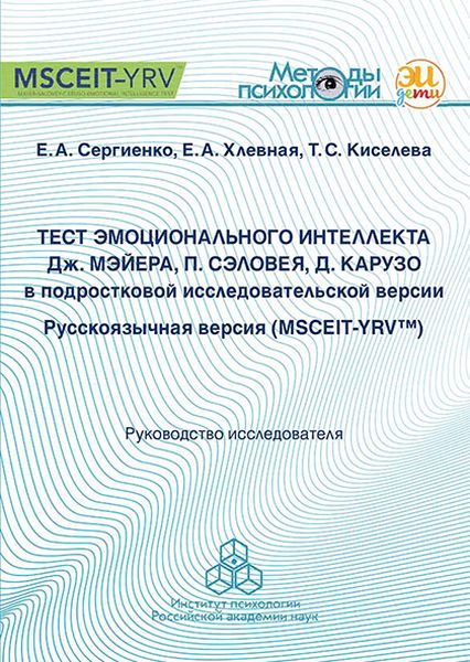 Сергиенко, Е. А. Тест эмоционального интеллекта Дж. Мэйера, П. Сэловея, Д. Карузо в подростковой исследовательской версии: русскоязычная версия (MSCEIT-YRV™) : руководство исследователя / Е. А. Сергиенко, Е. А. Хлевная, Т. С. Киселева. — Москва : Издательство «Институт психологии РАН», 2020. — 108 c. — ISBN 978-5-9270-0419-5. — Текст : электронный // Цифровой образовательный ресурс IPR SMART : [сайт]. — URL: https://www.iprbookshop.ru/123792.html (дата обращения: 13.09.2022). — Режим доступа: для авторизир. пользователей