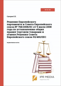 Сухарев, Е. Е. Решение Европейского парламента и Совета Европейского союза № 768/2008/ЕС от 9 июля 2008 года по установлению общих правил торговли товарами и отмене Решения Совета Европейского союза 93/465/ЕЕС / Е. Е. Сухарев. — Саратов : Ай Пи Эр Медиа, 2010. — 82 c. — Текст : электронный // Цифровой образовательный ресурс IPR SMART : [сайт]. — URL: https://www.iprbookshop.ru/1242.html (дата обращения: 08.09.2025). — Режим доступа: для авторизир. пользователей