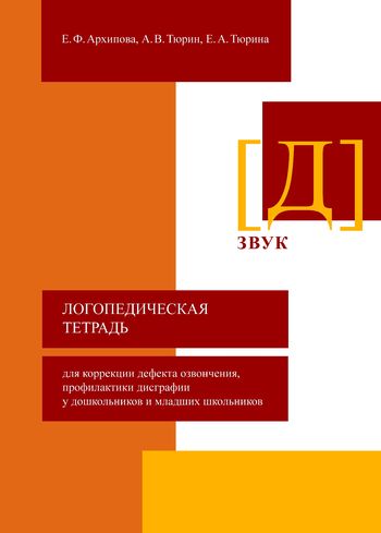Архипова, Е. Ф. Логопедическая тетрадь для коррекции дефекта озвончения, профилактики дисграфии у дошкольников и младших школьников. Звук [Д] / Е. Ф. Архипова, А. В. Тюрин, Е. А. Тюрина. — Москва : Изд-во В. Секачев, 2022. — 89 c. — ISBN 978-5-4481-1234-8. — Текст : электронный // Цифровой образовательный ресурс IPR SMART : [сайт]. — URL: https://www.iprbookshop.ru/124439.html (дата обращения: 07.10.2022). — Режим доступа: для авторизир. пользователей