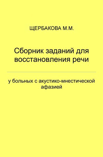 Щербакова, М. М. Сборник заданий для восстановления речи у больных с акустико-мнестической афазией / М. М. Щербакова. — 3-е изд. — Москва : Изд-во В. Секачев, 2020. — 81 c. — ISBN 978-5-4481-0727-6. — Текст : электронный // Цифровой образовательный ресурс IPR SMART : [сайт]. — URL: https://www.iprbookshop.ru/124462.html (дата обращения: 07.10.2022). — Режим доступа: для авторизир. пользователей