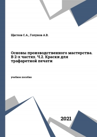 Щеглов С.А. Основы производственного мастерства. В 2-х частях. Ч.2. Краски для трафаретной печати : учебное пособие / Щеглов С.А., Голунов А.В.. — Омск : Омский государственный технический университет, 2021. — 240 c. — ISBN 978-5-8149-3209-9 (ч.2), 978-5-8149-2815-3. — Текст : электронный // Цифровой образовательный ресурс IPR SMART : [сайт]. — URL: https://www.iprbookshop.ru/124861.html (дата обращения: 05.12.2025). — Режим доступа: для авторизир. пользователей