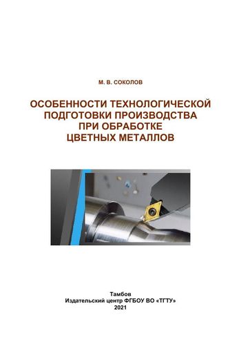 Соколов, М. В. Особенности технологической подготовки производства при обработке цветных металлов : учебное пособие / М. В. Соколов. — Тамбов : Тамбовский государственный технический университет, ЭБС АСВ, 2021. — 81 c. — ISBN 978-5-8265-2408-4. — Текст : электронный // Цифровой образовательный ресурс IPR SMART : [сайт]. — URL: https://www.iprbookshop.ru/125029.html (дата обращения: 18.10.2022). — Режим доступа: для авторизир. пользователей