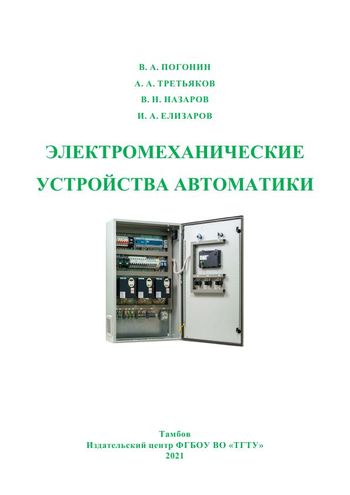 Электромеханические устройства автоматики : учебное пособие / В. А. Погонин, А. А. Третьяков, В. Н. Назаров, И. А. Елизаров. — Тамбов : Тамбовский государственный технический университет, ЭБС АСВ, 2021. — 80 c. — ISBN 978-5-8265-2381-0. — Текст : электронный // Цифровой образовательный ресурс IPR SMART : [сайт]. — URL: https://www.iprbookshop.ru/125030.html (дата обращения: 18.10.2022). — Режим доступа: для авторизир. пользователей