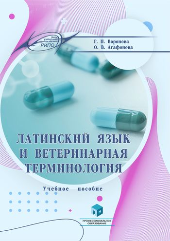 Воронова, Г. П. Латинский язык и ветеринарная терминология : учебное пособие / Г. П. Воронова, О. В. Агафонова. — Минск : Республиканский институт профессионального образования (РИПО), 2021. — 236 c. — ISBN 978-985-7253-90-6. — Текст : электронный // Цифровой образовательный ресурс IPR SMART : [сайт]. — URL: https://www.iprbookshop.ru/125409.html (дата обращения: 30.10.2022). — Режим доступа: для авторизир. пользователей