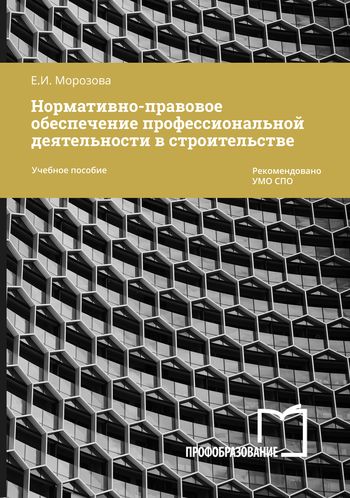 Морозова, Е. И. Нормативно-правовое обеспечение профессиональной деятельности в строительстве : учебное пособие для СПО / Е. И. Морозова. — Саратов : Профобразование, 2022. — 87 c. — ISBN 978-5-4488-1503-4. — Текст : электронный // Цифровой образовательный ресурс IPR SMART : [сайт]. — URL: https://www.iprbookshop.ru/125576.html (дата обращения: 07.11.2022). — Режим доступа: для авторизир. пользователей