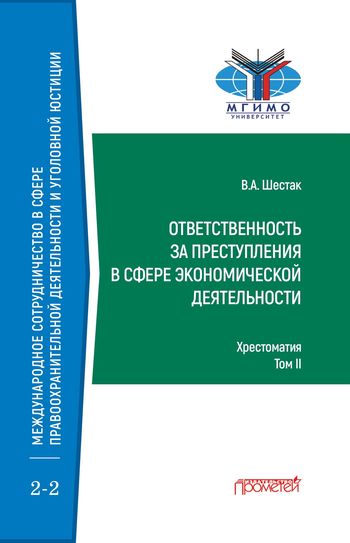 Шестак, В. А. Ответственность за преступления в сфере экономической деятельности. В 3 томах. Т.II : хрестоматия / В. А. Шестак. — Москва : Прометей, 2021. — 928 c. — ISBN 978-5-00172-115-4. — Текст : электронный // Цифровой образовательный ресурс IPR SMART : [сайт]. — URL: https://www.iprbookshop.ru/125673.html (дата обращения: 09.11.2022). — Режим доступа: для авторизир. пользователей