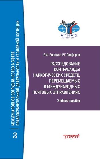 Васюков, В. Ф. Расследование контрабанды наркотических средств, перемещаемых в международных почтовых отправлениях : учебное пособие / В. Ф. Васюков, Р. Г. Панферов ; под редакцией А. Г. Волеводза. — Москва : Прометей, 2021. — 332 c. — ISBN 978-5-00172-119-2. — Текст : электронный // Цифровой образовательный ресурс IPR SMART : [сайт]. — URL: https://www.iprbookshop.ru/125691.html (дата обращения: 09.11.2022). — Режим доступа: для авторизир. пользователей