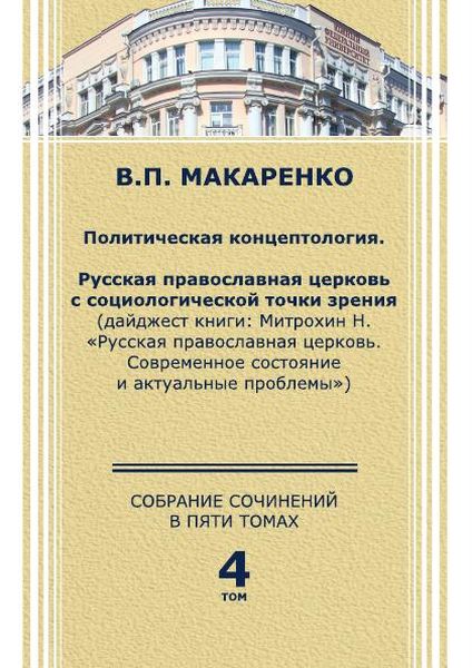 Макаренко, В. П. Собрание сочинений. В 5 томах. Т.4. Политическая концептология. Русская православная церковь с социологической точки зрения / В. П. Макаренко. — Ростов-на-Дону, Таганрог : Издательство Южного федерального университета, 2021. — 657 c. — ISBN 978-5-9275-3911-6 (т.4), 978-5-9275-3907-9. — Текст : электронный // Цифровой образовательный ресурс IPR SMART : [сайт]. — URL: https://www.iprbookshop.ru/125714.html (дата обращения: 09.11.2022). — Режим доступа: для авторизир. пользователей