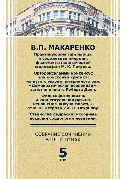 Собрание сочинений. В 5 томах. Т.5. Практикующие гегельянцы и социальная инерция: фрагменты политической философии М.К. Петрова. Ортодоксальный консенсус или поисковая критика: на пути к теории потерянного рая. «Демократическая вселенная»: заметки о книге Роберта Даля. Философская жизнь и концептуальная рутина. Отношение «наука-власть»: от М.К. Петрова к А.П. Огурцову. Станислав Андрески: исходные посылки социологии незнания