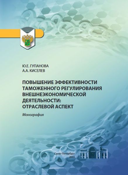 Гупанова, Ю. Е. Повышение эффективности таможенного регулирования внешнеэкономической деятельности: отраслевой аспект : монография / Ю. Е. Гупанова, А. А. Киселев. — Санкт-Петербург : Интермедия, 2022. — 172 c. — ISBN 978-5-4383-0254-4. — Текст : электронный // Цифровой образовательный ресурс IPR SMART : [сайт]. — URL: https://www.iprbookshop.ru/125755.html (дата обращения: 24.11.2022). — Режим доступа: для авторизир. пользователей