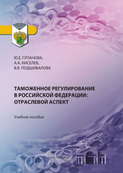 Гупанова, Ю. Е. Таможенное регулирование в Российской Федерации: отраслевой аспект : учебное пособие / Ю. Е. Гупанова, А. А. Киселев, В. В. Подшивалова ; под редакцией Ю. Е. Гупановой. — Санкт-Петербург : Интермедия, 2022. — 144 c. — ISBN 978-5-4383-0251-3. — Текст : электронный // Цифровой образовательный ресурс IPR SMART : [сайт]. — URL: https://www.iprbookshop.ru/125761.html (дата обращения: 24.11.2022). — Режим доступа: для авторизир. пользователей
