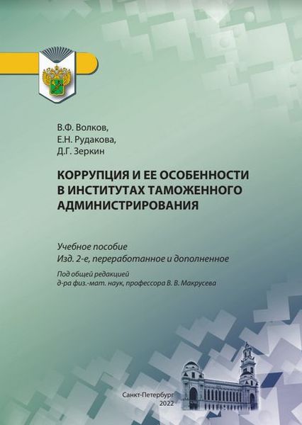 Волков, В. Ф. Коррупция и ее особенности в институтах таможенного администрирования : учебное пособие / В. Ф. Волков, Е. Н. Рудакова, Д. Г. Зеркин ; под редакцией В. В. Макрусева. — 2-е изд. — Санкт-Петербург : Интермедия, 2022. — 340 c. — ISBN 978-5-4383-0256-8. — Текст : электронный // Цифровой образовательный ресурс IPR SMART : [сайт]. — URL: https://www.iprbookshop.ru/125764.html (дата обращения: 24.11.2022). — Режим доступа: для авторизир. пользователей