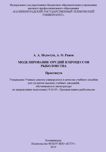 Недоступ, А. А. Моделирование орудий и процессов рыболовства : практикум / А. А. Недоступ, А. О. Ражев. — Калининград : Издательство ФГБОУ ВПО «КГТУ», 2014. — 174 c. — Текст : электронный // Цифровой образовательный ресурс IPR SMART : [сайт]. — URL: https://www.iprbookshop.ru/125774.html (дата обращения: 11.11.2022). — Режим доступа: для авторизир. пользователей