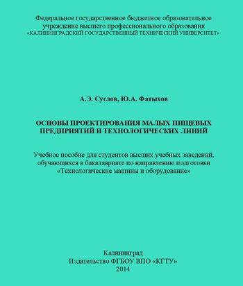 Суслов, А. Э. Основы проектирования малых пищевых предприятий и технологических линий / А. Э. Суслов, Ю. А. Фатыхов. — Калининград : Издательство ФГБОУ ВПО «КГТУ», 2014. — 64 c. — Текст : электронный // Цифровой образовательный ресурс IPR SMART : [сайт]. — URL: https://www.iprbookshop.ru/125784.html (дата обращения: 11.11.2022). — Режим доступа: для авторизир. пользователей