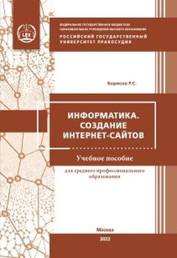 Борисов, Р. С. Информатика. Создание интернет-сайтов : учебное пособие / Р. С. Борисов. — Москва : Российский государственный университет правосудия, 2022. — 157 c. — ISBN 978-5-93916-988-2. — Текст : электронный // Цифровой образовательный ресурс IPR SMART : [сайт]. — URL: https://www.iprbookshop.ru/126117.html (дата обращения: 25.11.2022). — Режим доступа: для авторизир. пользователей