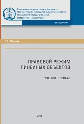 Мисник, Г. А. Правовой режим линейных объектов : курс лекций / Г. А. Мисник. — Москва : Российский государственный университет правосудия, 2022. — 55 c. — ISBN 978-5-93916-986-8. — Текст : электронный // Цифровой образовательный ресурс IPR SMART : [сайт]. — URL: https://www.iprbookshop.ru/126123.html (дата обращения: 25.11.2022). — Режим доступа: для авторизир. пользователей