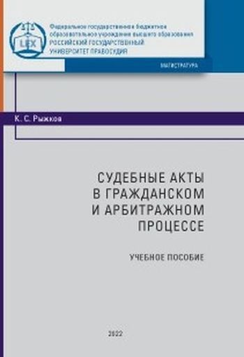 Рыжков К.С. Судебные акты в гражданском и арбитражном процессе : учебное пособие / Рыжков К.С.. — Москва : Российский государственный университет правосудия, 2022. — 128 c. — ISBN 978-5-93916-992-9. — Текст : электронный // Цифровой образовательный ресурс IPR SMART : [сайт]. — URL: https://www.iprbookshop.ru/126129.html (дата обращения: 22.12.2025). — Режим доступа: для авторизир. пользователей