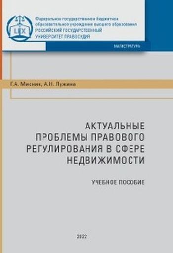 Мисник Г.А. Актуальные проблемы правового регулирования в сфере недвижимости : учебное пособие / Мисник Г.А., Лужина А.Н.. — Москва : Российский государственный университет правосудия, 2022. — 96 c. — ISBN 978-5-00209-007-5. — Текст : электронный // Цифровой образовательный ресурс IPR SMART : [сайт]. — URL: https://www.iprbookshop.ru/126130.html (дата обращения: 20.12.2025). — Режим доступа: для авторизир. пользователей