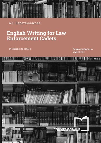 Веретенникова, А. Е. English Writing for Law Enforcement Cadets : учебное пособие для СПО / А. Е. Веретенникова. — Саратов, Москва : Профобразование, Ай Пи Ар Медиа, 2023. — 125 c. — ISBN 978-5-4488-1581-2, 978-5-4497-1880-8. — Текст : электронный // Цифровой образовательный ресурс IPR SMART : [сайт]. — URL: https://www.iprbookshop.ru/126271.html (дата обращения: 13.12.2022). — Режим доступа: для авторизир. пользователей