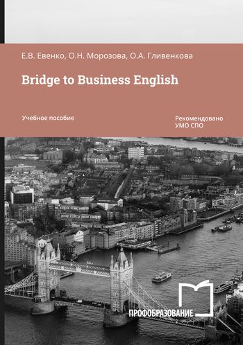 Евенко, Е. В. Bridge to Business English : учебное пособие для СПО / Е. В. Евенко, О. Н. Морозова, О. А. Гливенкова. — Саратов, Москва : Профобразование, Ай Пи Ар Медиа, 2022. — 105 c. — ISBN 978-5-4488-1584-3, 978-5-4497-1920-1. — Текст : электронный // Цифровой образовательный ресурс IPR SMART : [сайт]. — URL: https://www.iprbookshop.ru/126418.html (дата обращения: 08.12.2022). — Режим доступа: для авторизир. пользователей