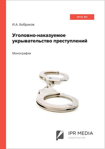 Бобраков, И. А. Уголовно-наказуемое укрывательство преступлений : монография / И. А. Бобраков. — Москва : Ай Пи Ар Медиа, 2023. — 92 c. — ISBN 978-5-4497-1955-3. — Текст : электронный // Цифровой образовательный ресурс IPR SMART : [сайт]. — URL: https://www.iprbookshop.ru/126621.html (дата обращения: 23.01.2023). — Режим доступа: для авторизир. пользователей