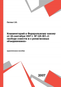 Пятин, С. Ю. Комментарий к Федеральному закону от 26 сентября 1997 г. № 125-ФЗ «О свободе совести и о религиозных объединениях» / С. Ю. Пятин. — Москва : Новая правовая культура, 2007. — 315 c. — Текст : электронный // Цифровой образовательный ресурс IPR SMART : [сайт]. — URL: https://www.iprbookshop.ru/1269.html (дата обращения: 01.12.2025). — Режим доступа: для авторизир. пользователей