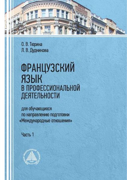 Тюрина, О. В. Французский язык в профессиональной деятельности (для обучающихся по направлению подготовки «Международные отношения»). В 2 частях. Ч.1 : учебное пособие / О. В. Тюрина, Л. В. Дудникова. — Ростов-на-Дону, Таганрог : Издательство Южного федерального университета, 2022. — 118 c. — ISBN 978-5-9275-4187-4 (ч.1), 978-5-9275-4186-7. — Текст : электронный // Цифровой образовательный ресурс IPR SMART : [сайт]. — URL: https://www.iprbookshop.ru/127101.html (дата обращения: 09.01.2023). — Режим доступа: для авторизир. пользователей