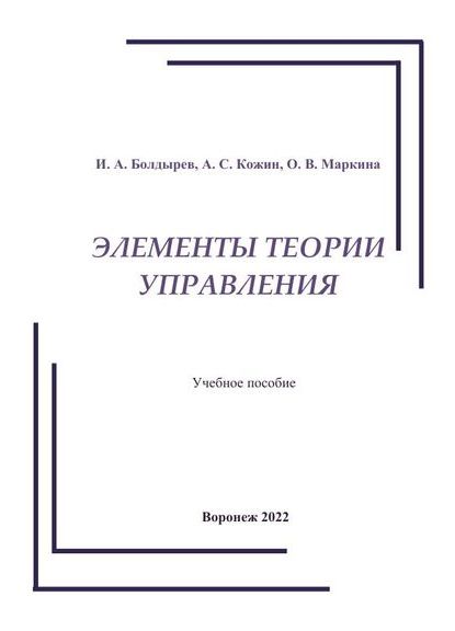 Болдырев, И. А. Элементы теории управления : учебное пособие / И. А. Болдырев, А. С. Кожин, О. В. Маркина. — Воронеж : Воронежский государственный технический университет, ЭБС АСВ, 2022. — 74 c. — ISBN 978-5-7731-1057-6. — Текст : электронный // Цифровой образовательный ресурс IPR SMART : [сайт]. — URL: https://www.iprbookshop.ru/127255.html (дата обращения: 18.01.2023). — Режим доступа: для авторизир. пользователей