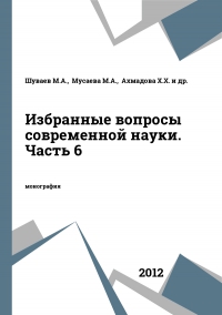 Избранные вопросы современной науки. Часть 6 : монография / М. А. Шуваев, М. А. Мусаева, Х. Х. Ахмадова [и др.] ; под редакцией С. В. Галачиева. — Таганрог : Издательство «Перо», Центр научной мысли, 2012. — 312 c. — Текст : электронный // Цифровой образовательный ресурс IPR SMART : [сайт]. — URL: https://www.iprbookshop.ru/12744.html (дата обращения: 19.08.2025). — Режим доступа: для авторизир. пользователей