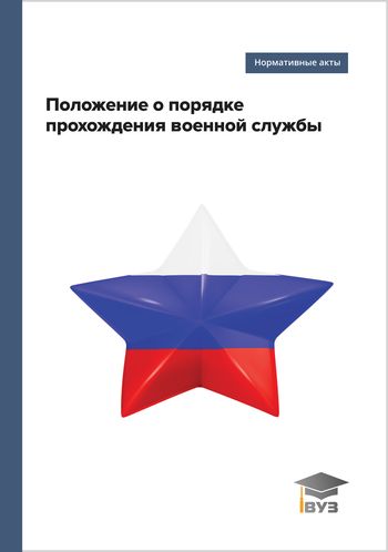 Положение о порядке прохождения военной службы. — Саратов : Вузовское образование, 2023. — 71 c. — ISBN 978-5-4487-0924-1. — Текст : электронный // Цифровой образовательный ресурс IPR SMART : [сайт]. — URL: https://www.iprbookshop.ru/127510.html (дата обращения: 23.01.2023). — Режим доступа: для авторизир. пользователей