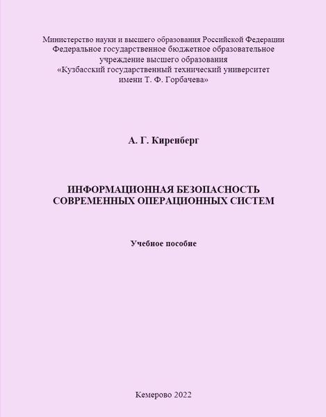 Киренберг А.Г. Информационная безопасность современных операционных систем : учебное пособие / Киренберг А.Г.. — Кемерово : Кузбасский государственный технический университет имени Т.Ф. Горбачева, 2022. — 138 c. — ISBN 978-5-00137-320-9. — Текст : электронный // Цифровой образовательный ресурс IPR SMART : [сайт]. — URL: https://www.iprbookshop.ru/128393.html (дата обращения: 20.12.2025). — Режим доступа: для авторизир. пользователей